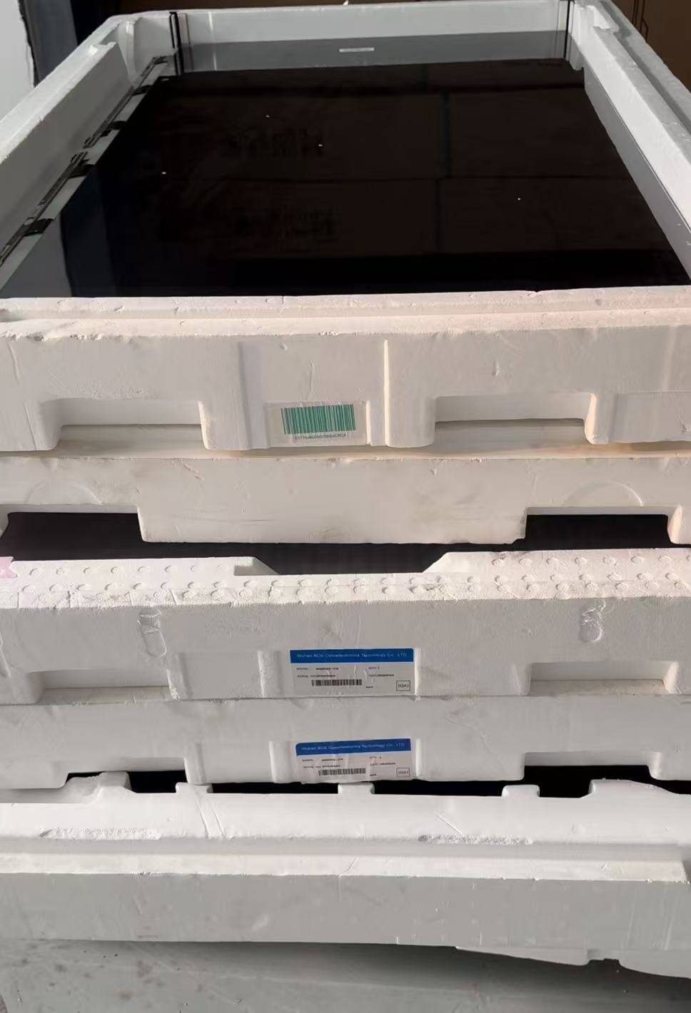 澎湃新闻在1-2楼的仓库看到,仓库中堆放有上百台尺寸不一、包装齐整的电视机。不过,这些电视机包装箱仅写有“液晶LED电视”“健康数字电视机”等字样,同样没有品牌、生产厂家等信息。此外,仓库中还堆放有液晶面板、电视机后盖配件等。7日下午,凯威公司的数名工人一边将1-2楼堆放的电视机搬至3楼或4楼,一边与快递小哥将出售的电视机运往快递网点。记者观察到,当日下午,该仓库发出的电视机超过30台,收货地点有广东东莞、山东潍坊、湖北黄石、福建泉州等地。快递小哥告诉记者,一台电视机的运费200元左右,从该仓库发出的货“挺多的”。