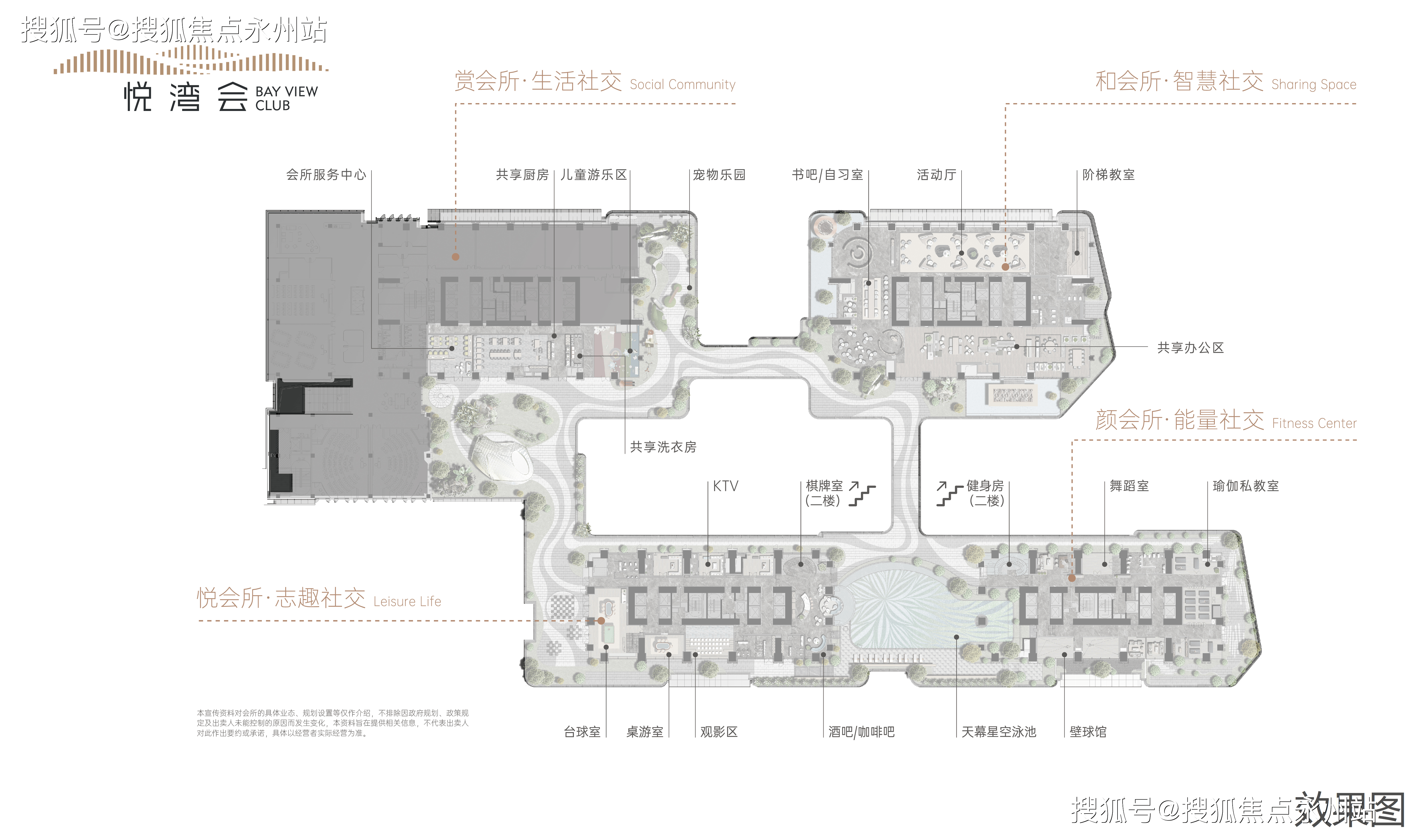 柏悦湾首创约5000㎡新精致主义社交CLUB--悦湾会,以多维空间折叠生活的理念建构和、颜、悦、赏四大主题会所。