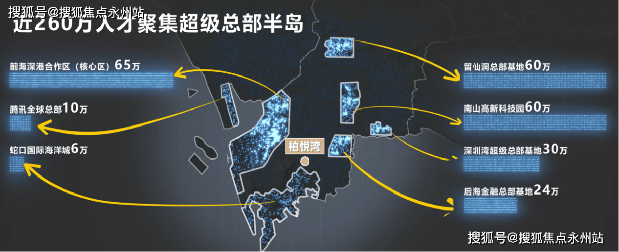 【超级总部半岛之核——超百万人才的中央智区】柏悦湾位于由深圳湾、蛇口湾、前海湾围成的南山半岛,也是“超豪半岛”;南山半岛串联7大总部基地,吸引大批诸如腾讯、大疆、阿里巴巴等行业龙头企业,以及大批总部企业入驻,未来将吸引260万人才聚集