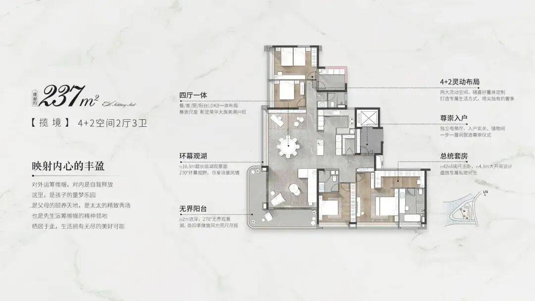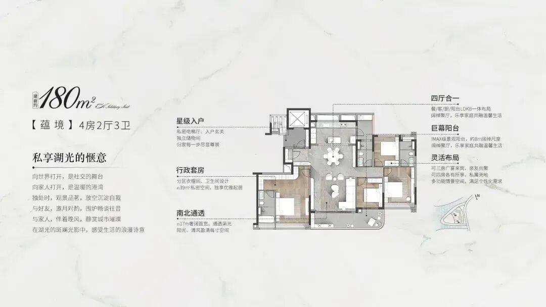 中海天幕湾,深度考究城市层峰人物的生活需求,精心打造约180/237㎡湖心岛居大平层,全面升维空间的尺度感与居住的舒适度,革新大城生活想象。